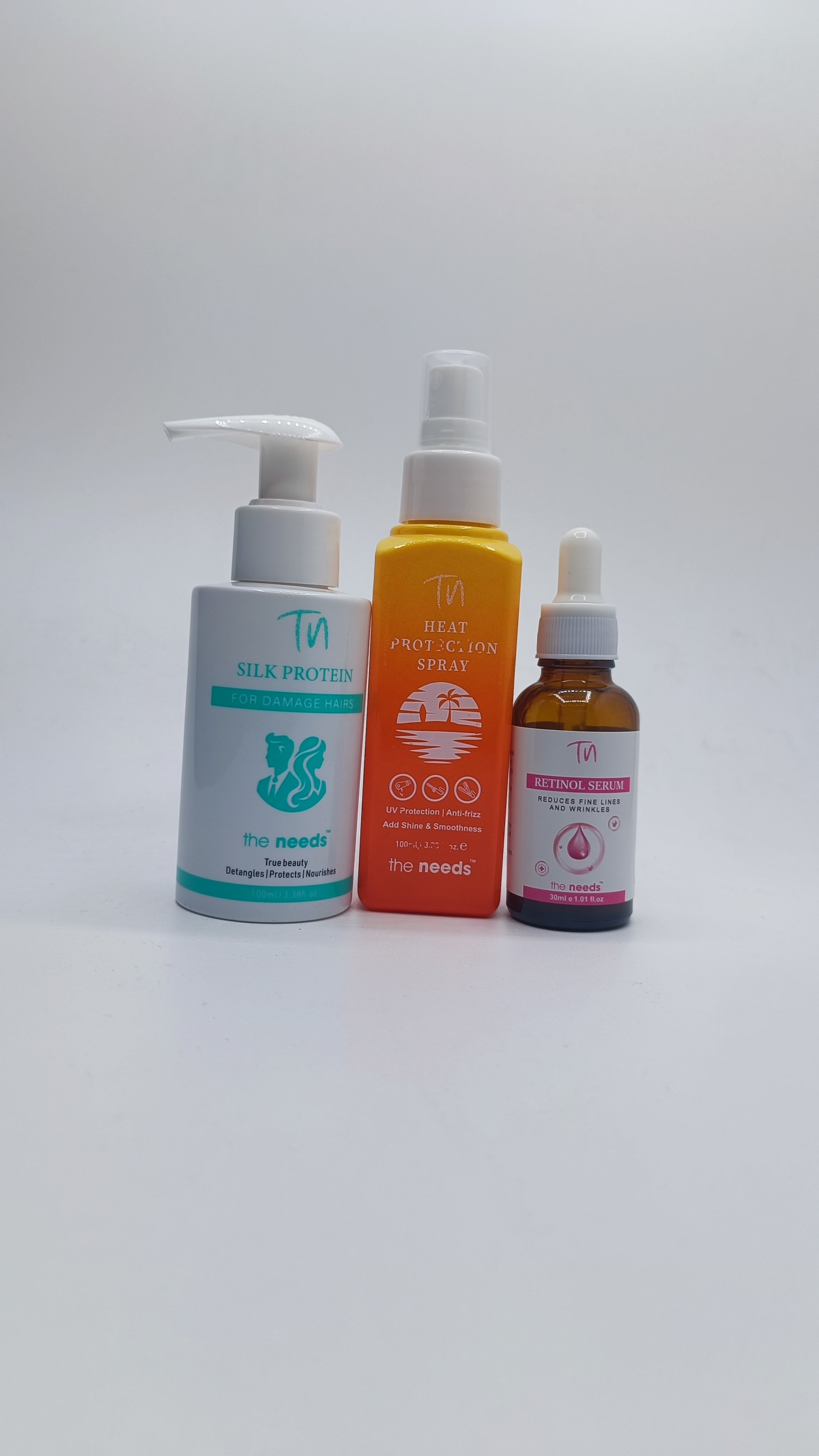 Reset bad skin and damaged hair with this one-stop Damage Repair Trio—an intense collection made to restore, shield, and revitalize. If you're battling fine lines or frizz, this necessity trio is designed to bring your natural radiance and strength from head to heel.