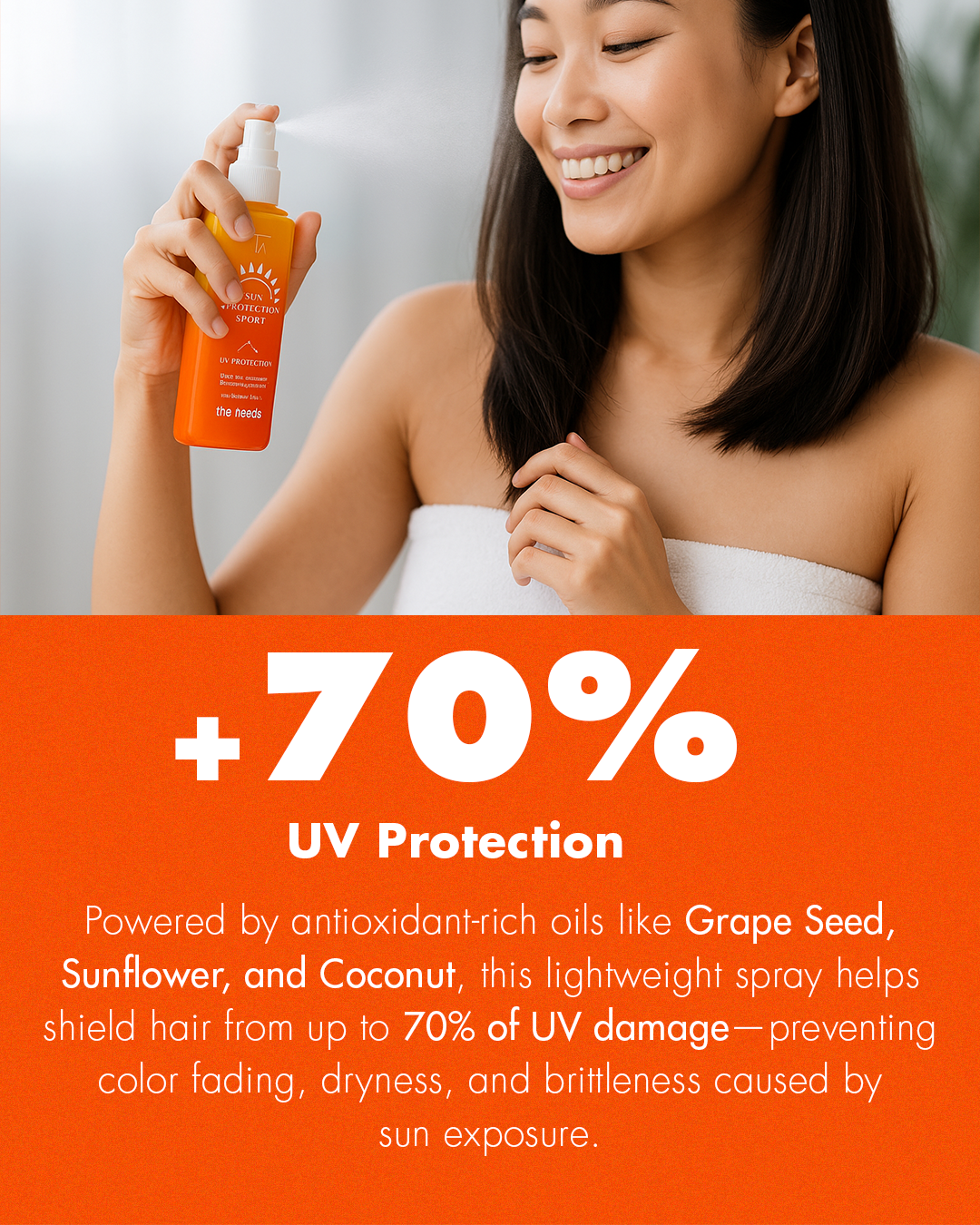 Sun Protection Hair Spray – 100 ml with Grape Seed Oil+Vitamin E+Natural Organic Oils | Weightless & Non-Greasy Invisible Mist | UV Protection Spray For Hair & Scalp | Prevents Color Fade & Dryness | For Outdoor Activities | Travel-Size UV Protection.