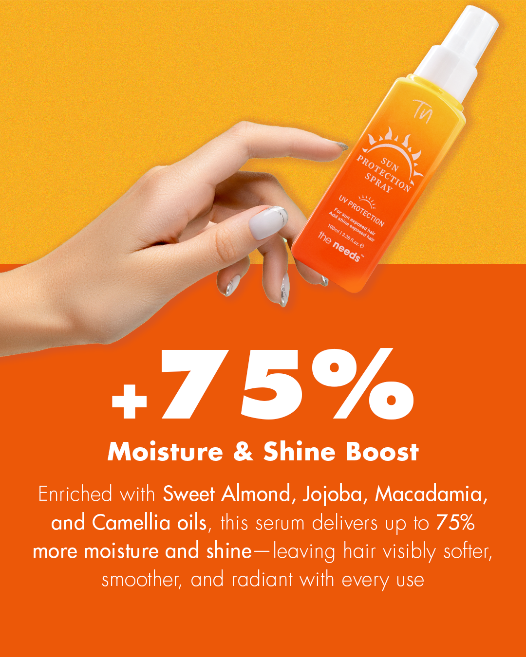 Don't let the sun take away your shine. The Needs Hair Sun Protection Spray is an invisible, weightless UV shield mist that shields hair from dryness caused by the sun, color loss, and heat damage. With vitamin-enriched botanical oils, it seals in moisture, returns softness, and adds shine—without residue. Whether you're on the beach, a stroll, or out in the sun, this is your everyday hair armor for long-lasting health and beauty.