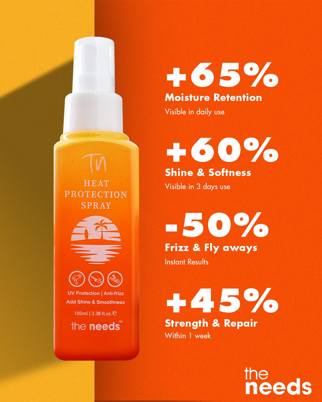Heat it up without the fear. The Needs Heat Shield Spray is your best-beloved styling defender, precision-batched to defend against flat iron, curling wand, and blow dryer damage. This silky-light spray encapsulates every lock in a safe shield, keeping moisture in, dryness at bay, and breakage, frizz reduced. The end results? Gliding-smooth, glossy strands that remain firm and rich no matter what heat you face.