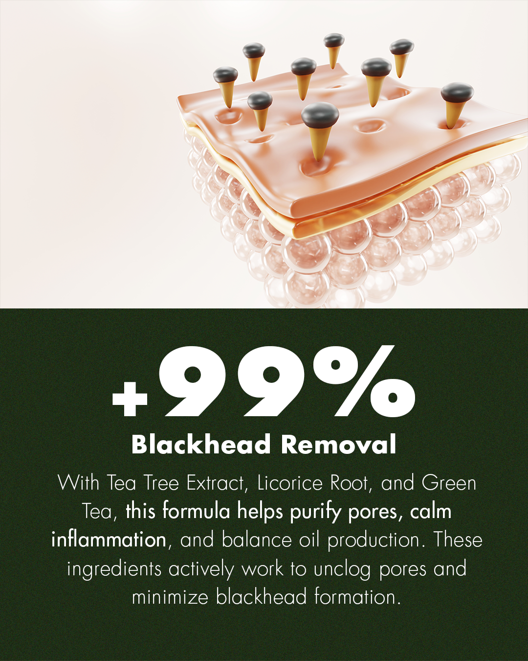 BLACKHEAD REMOVAL SERUM: Water, PVP, Alcohol, Melaleuca Alternifolia (Tea Tree) Extract, Glycyrrhiza Glabra (Licorice) Root Extract, Camellia Sinensis Leaf Extract, Rosmarinus Officinalis (Rosemary) Leaf Extract, Centella Asiatica Extract, butylene Glycol, Chamomilla Recutita (Matricaria) Flower Extract, Scutellaria Baicalensis Root Extract, Polygonum Cuspidatum Root Extract.